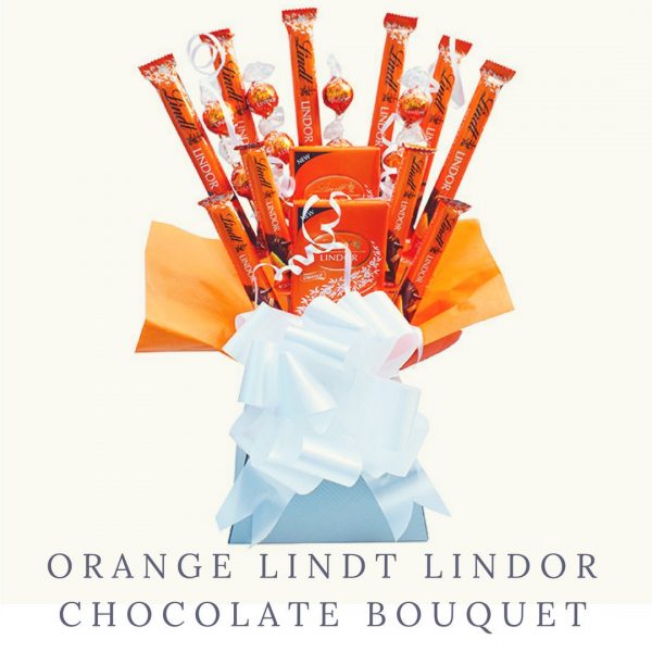 This Lindt Lindor choclate bouquet is an orange chocolate lovers delight. Created using their range of orange milk chocolate bars and truffles. Lindt Lindor chocolate is delicious and perfect for a special gift. Maybe an anniversary, a loved ones birthday or as a special treat.