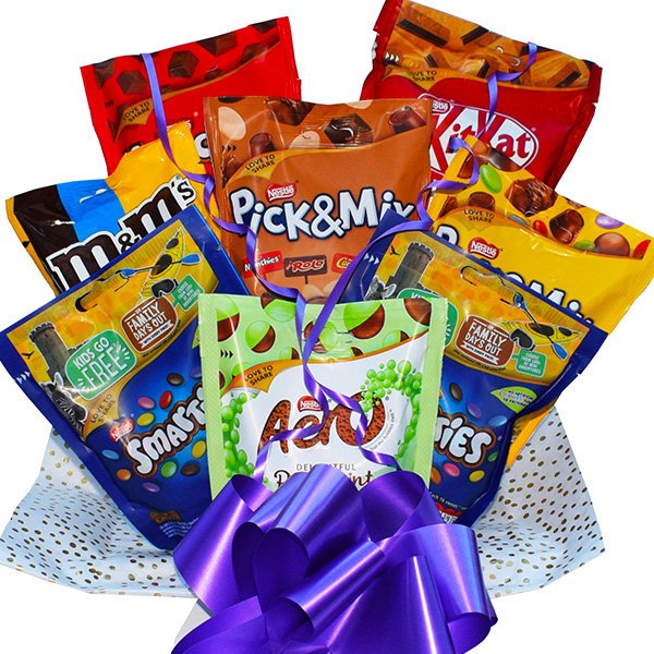 There’s something for everyone in this share pouch chocolate bouquet. Think of all the chocolate you love and it’s probably in this bouquet. Perfect for sharing with friends or colleagues, anyone would be delighted to receive this chocolate bouquet.